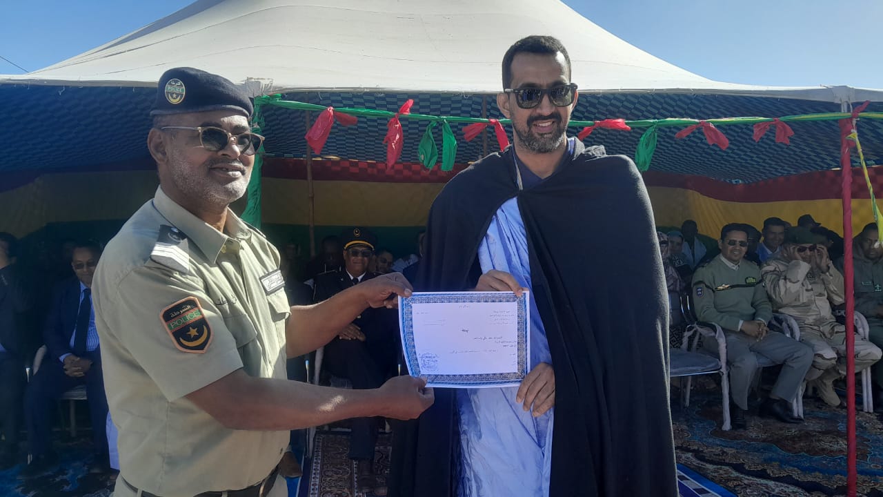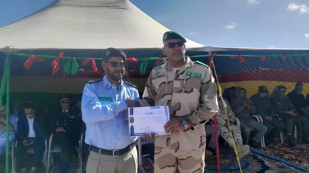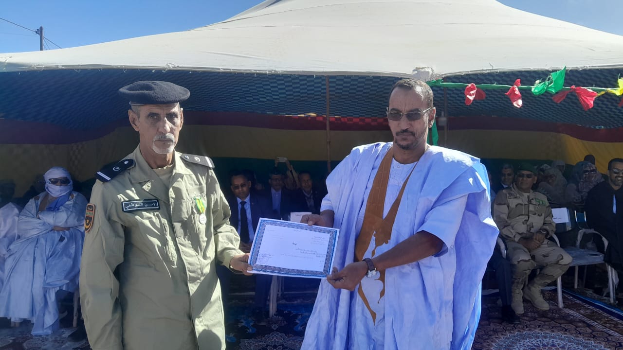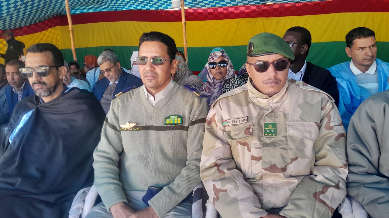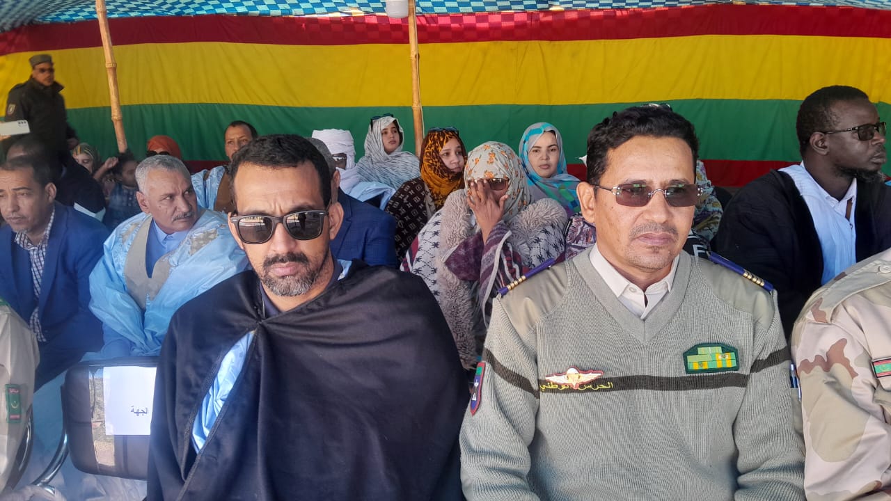 واستهل الحفل باستقبال المدير الجهوي للأمن المفوض الرئيس والي ولاية تيرس زمور عند مدخل الساحة، حيث استعرضا، رفقة قائد المنطقة العسكرية الثانية العقيد الشيخ ولد سيد بوي، تشكيلة الشرطة، قبل مصافحة مفوضي الشرطة وأصحاب الرتب. بعدها، اتجه الجميع إلى مواقعهم وقوفا أمام الخيمة التي ضمت رئيس المحكمة والمنتخبين ورؤساء المصالح الجهوية، متجهين غربا لمتابعة مراسم رفع العلم الوطني.