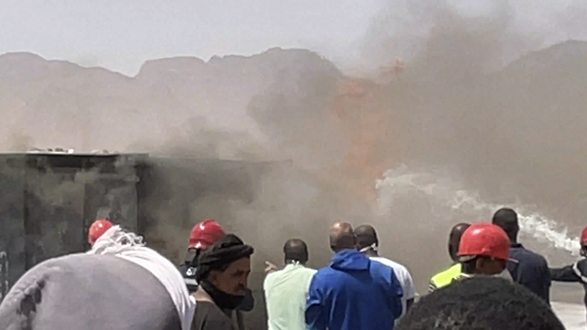 ودفعت الشركة الوطنية للصناعة والمناجم "سنيم" بعدة آليات وشاحنات إطفاء إلى المكان للمشاركة في جهود السيطرة على الحريق.